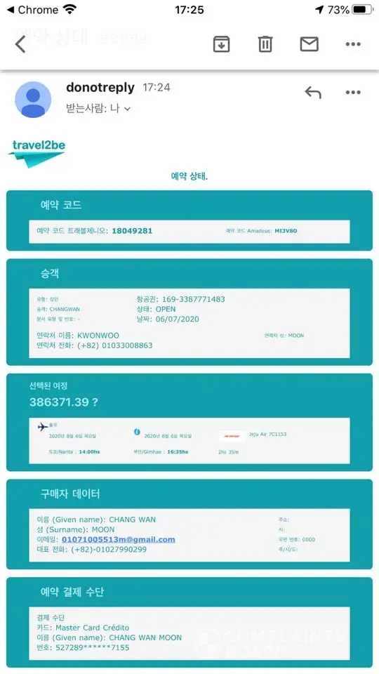 from South Korea to Brazil through your company website and 24th July, they went to Incheon National Airport in order to go on a business trip to Brazil.