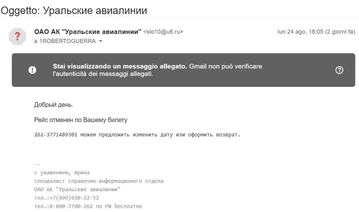 We inform you that one of your flights has been modified by the airline. We kindly invite you to check the new itinerary and contact us or to an airline representative at your soonest convenience.