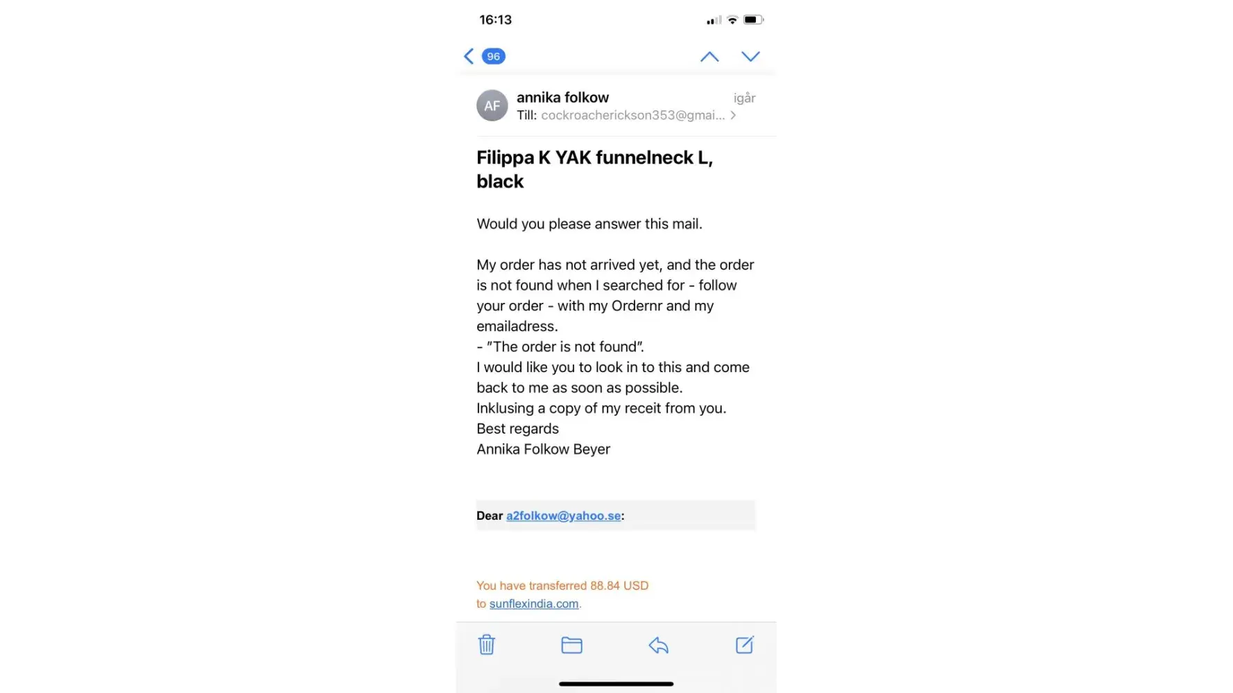 I orderd and paid for a Filippa K YAK sweater from www.sunflexindia.com