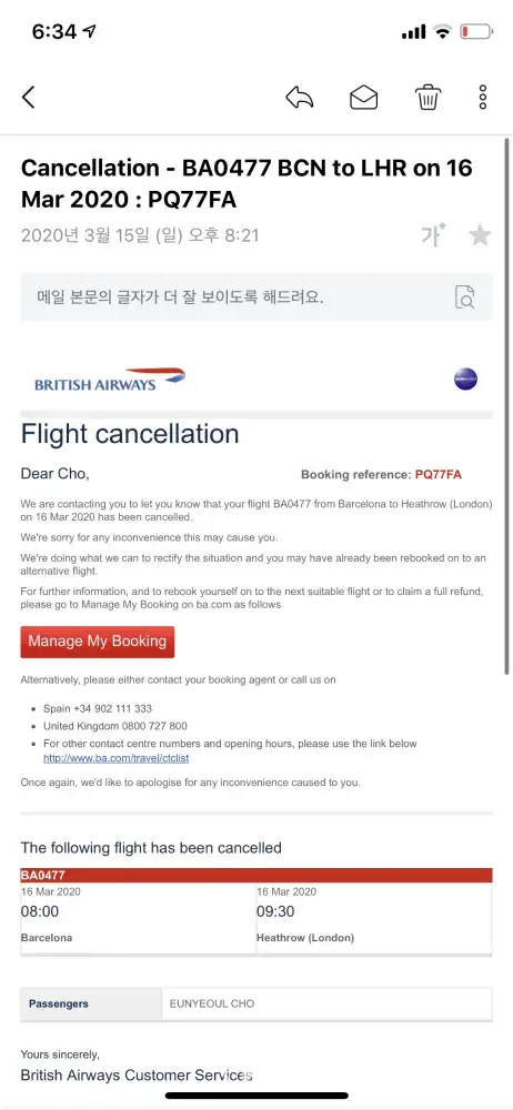 Hi. I booked a ticket from Incheon to Birmingham