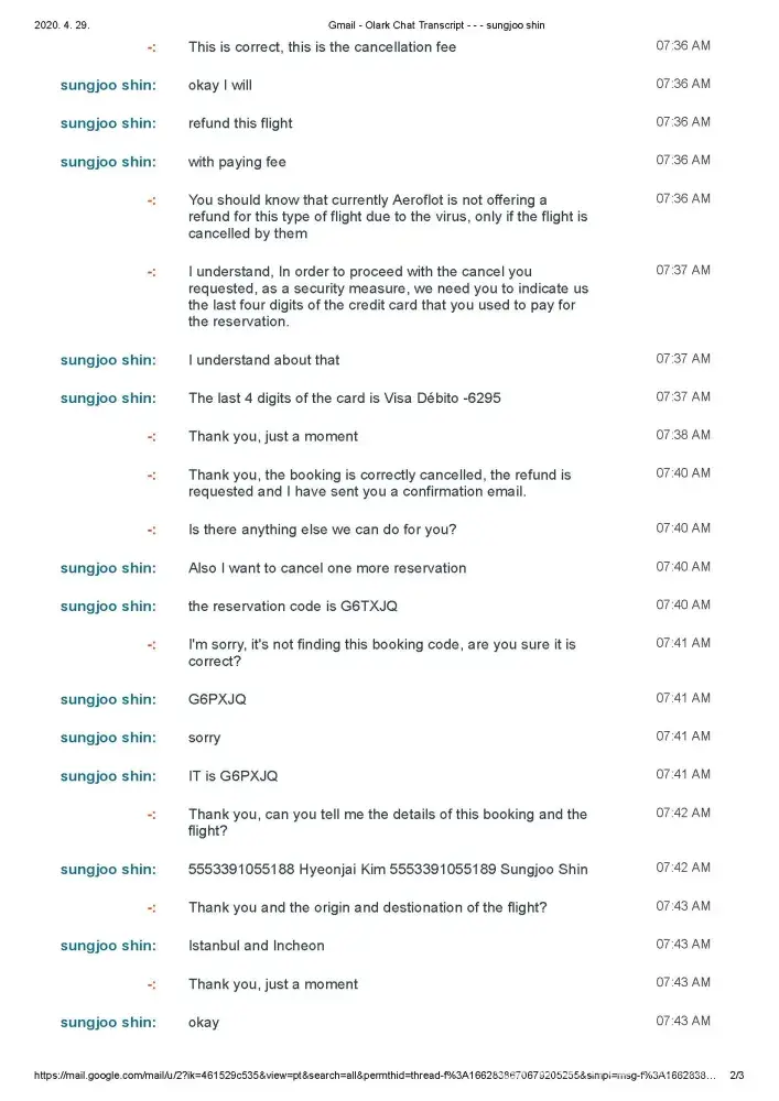 I booked flight to Australia from Korea last month. But the flight was canceled due to Corona Virus.
