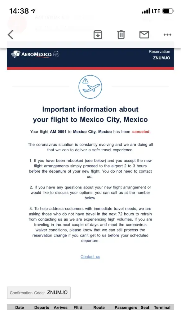 Please contact me ASAP to rearrange the connecting flight: