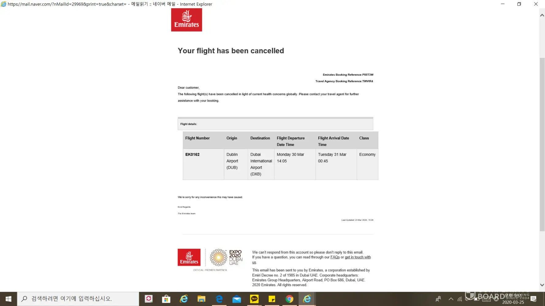 I reserved an Emirates ticket at Travelgenio. (Dublin to Seoul, booking number: RJLOX3) But a few days later, the plane was canceled.