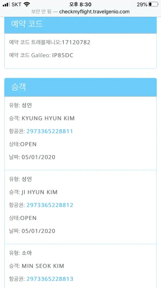 My reservation number is ip85dc and reservator name are kyung hyun kim, ji hyun kim and min seok kim.