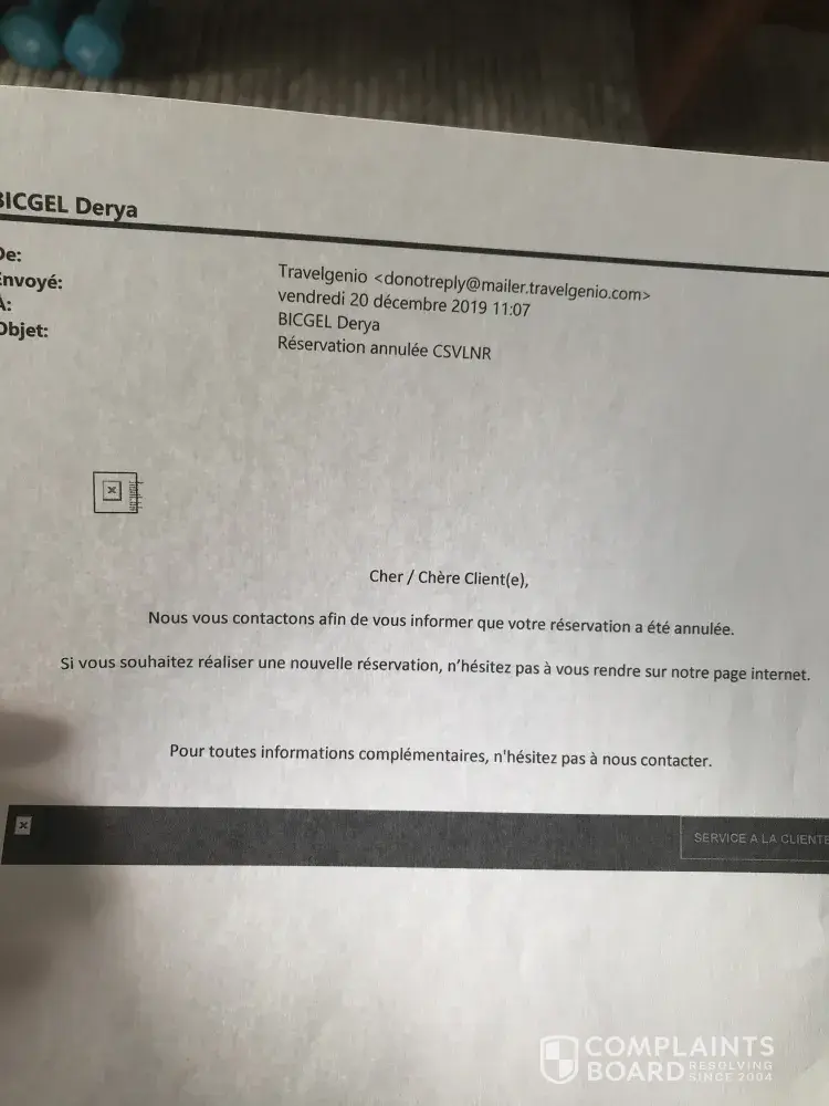 And after this mail on 20 of Dec, our flight was cancelled by Travelgenio .