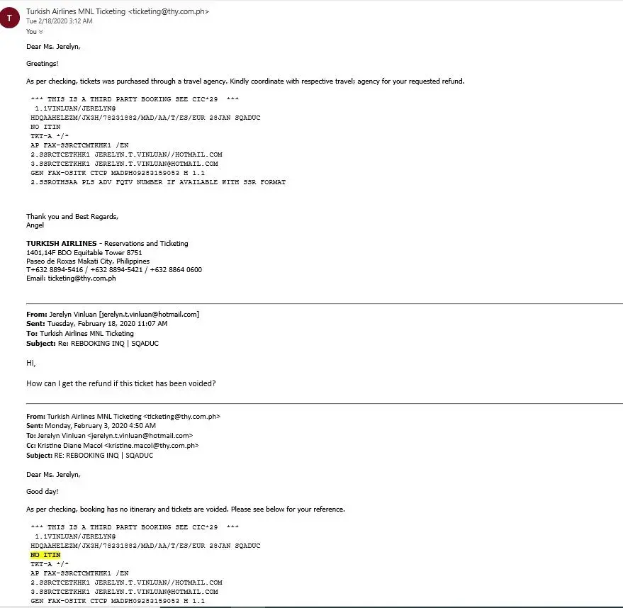 But because of the epidemic in China a lot of countries ban the travelling to China, Hongkong etc. I contacted the Turkish airlines and said the ticket has already been voided. I asked for the refund they told me to deal with the travel agency I already send dozens of email with travelgenio they are not responding how it has been voided, or if I will get a refund, or rebook they are ignoring all my emails and its been weeks now. Please Help