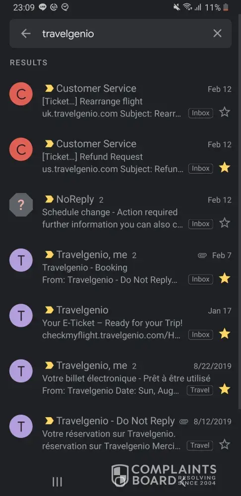 Travelgenio's poor customer service.