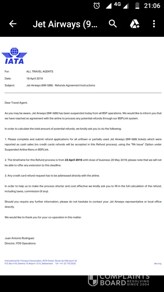 We attach the link to the airline's statement. https://www.jetairways.com/information/important-update.html