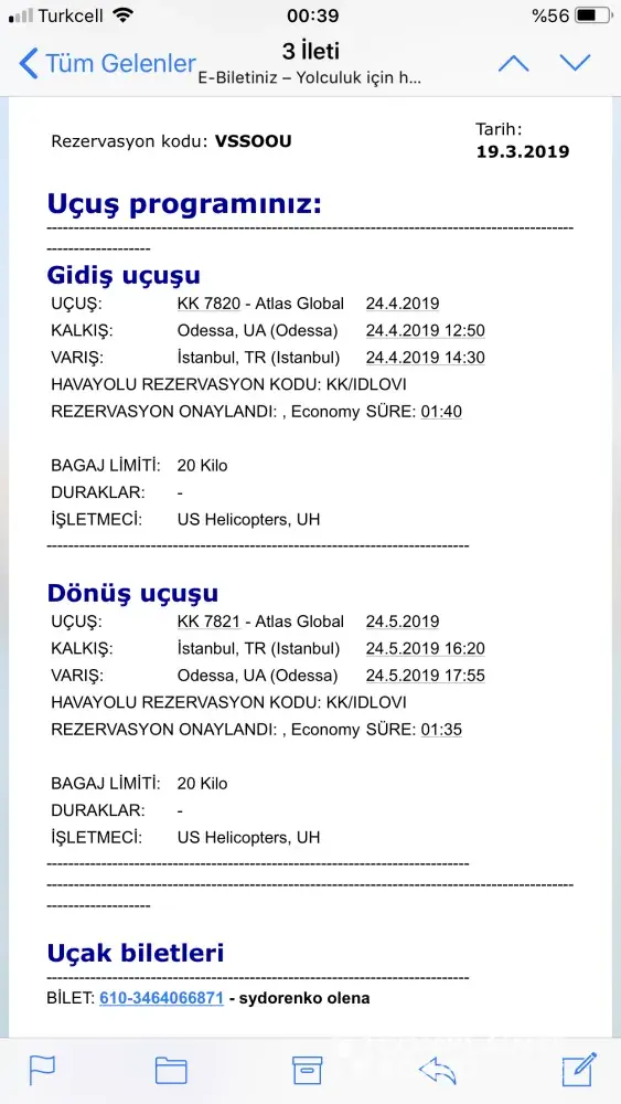 I bought ticket from odessa to istanbul April 21