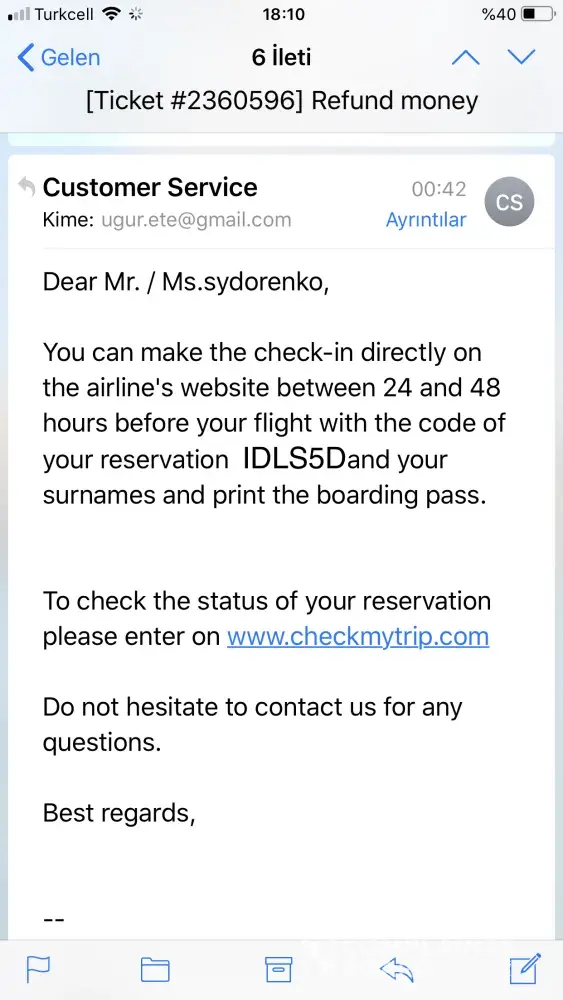 i did buy get tickets from your travel agent (travelgenio) from 24 to odessa istanbul - 24 may, istanbul odessa via internet in my debit card. I made a reservation and then I was informed that it was canceled. I can't confirm the ticket in any way. I sent an e-mail to the agent insisted, they send the same reservation codes and said check in 24 hours prior to the flight, but I cannot confirm the ticket I bought at the (atlasglobal) airlines. (Travelgenio) I requested a refund from the site, but no reply. I'm expecting you to help me with this kind of situation for the first time