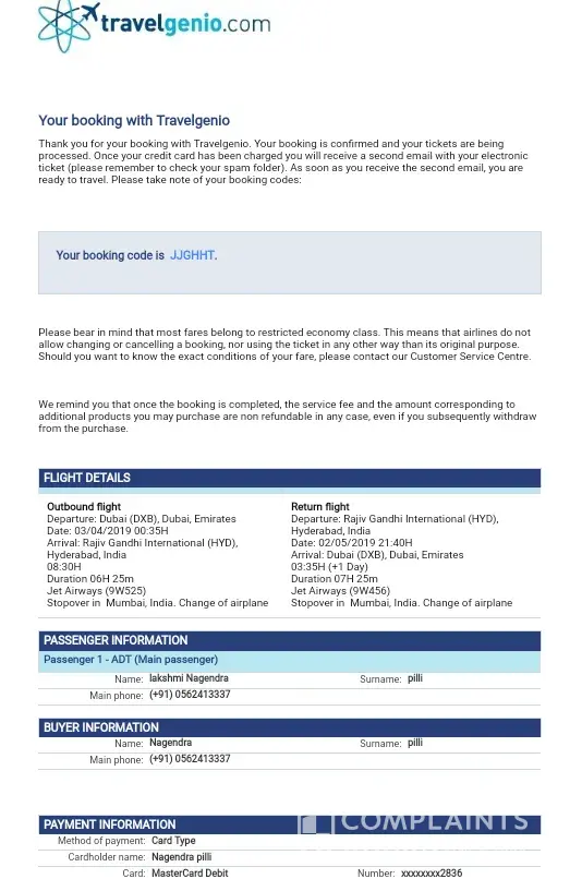 Additionally I contacted Travelgenio hotline several times but they were not able to help me. They just told me they are going to forward my request to another department.