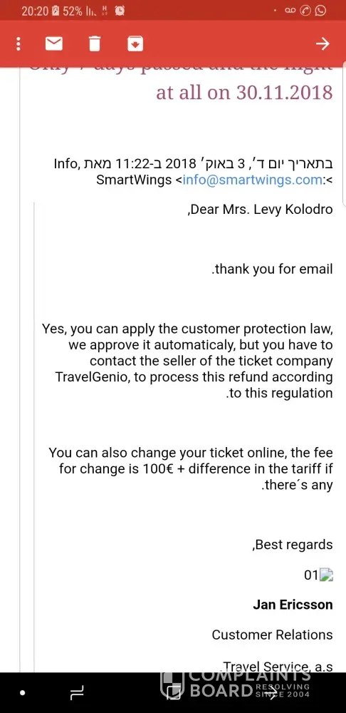 Suddenly they sent me today that they apologize for being wrong and there is no refund at all because the consumer protection law did not apply to me... Without an explanation of why and why. It's just three terrible days that go through me because of them