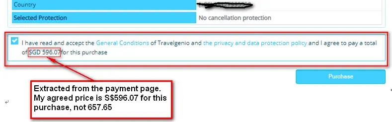Travelgenio是一家骗åä¸ä»‹ã€‚我在Tripadvisor网站上通过Travelgenioè®¢äº†ä¸¤å¼ ä¸œèˆªçš„æœºç¥¨ï¼Œ[protected]ä»Žæ–°åŠ å¡é£žå¾€ä¸Šæµ·ï¼Œé€‰ç”¨ä¿¡ç”¨å¡ä»˜æ¬¾ã€‚付款页上显示原价S$657.65,折扣S$61.58 实付S$596.07。我确定的æˆäº¤ä»·æ˜¯S$596.07ã€‚ä¸ºé˜²çº çº·ï¼Œæˆ‘è¿˜æŠŠä»˜æ¬¾é¡µé¢æˆªå±ã€‚è°çŸ¥æŒ‰ä¸‹ã€Šä»˜æ¬¾ã€‹é”®åŽï¼ŒTravelgenio从我信用å¡ä¸Šæ‰£é™¤çš„å´æ˜¯S$657.65。