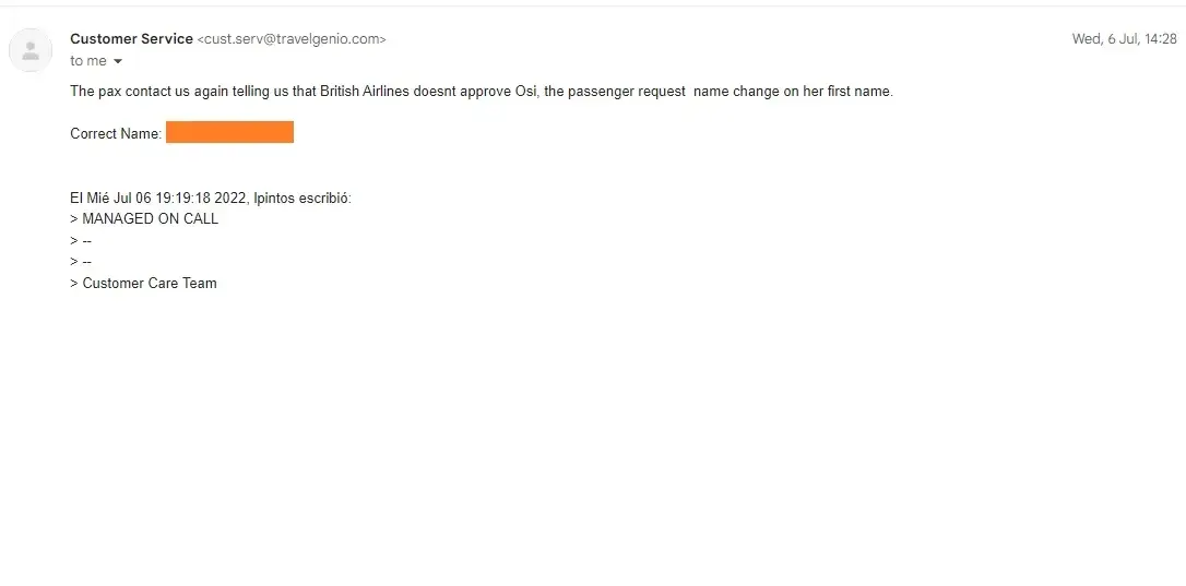4) The best was when CS told me on the first day I called "it is just a single extra letter, call the airline and see if they will let you travel". How can CS agent in a travel industry even say this! I called the Airline and they obviously said they cannot do anything.