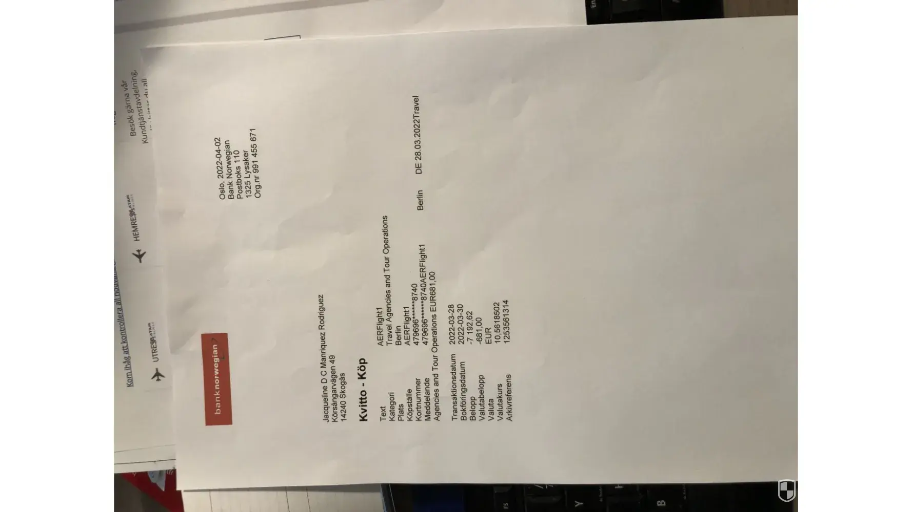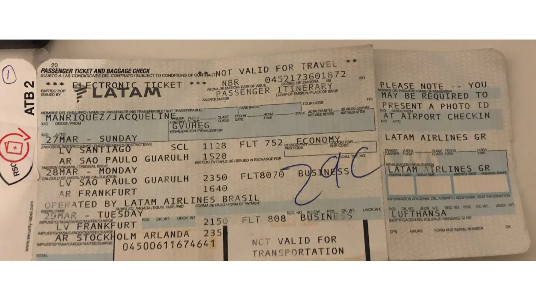 Jag har köp flygg biljetter från er till Chile Business Class . Jag har fått en flertal avbokningar från flygbolaget på min tillbaka resa. Jag undrar om jag tecknade en extra försäkring hos er vid köp av flyggbilljeten. Jag reste med LATAM och blev kvar i Chile och därefter i Frankfurt
