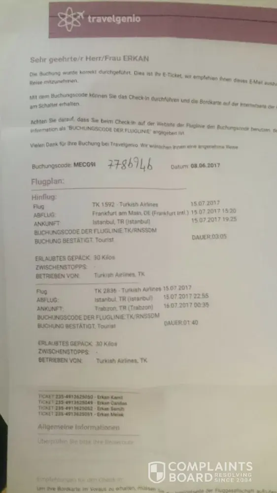Travelgenio has left an official reply on this complaint.