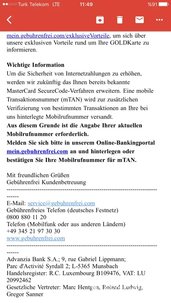 I just want to bring to your attention that there is not a secure link within that email, nor is there any talk of me needing to still pay. I have the email saved if you would like it in the future.