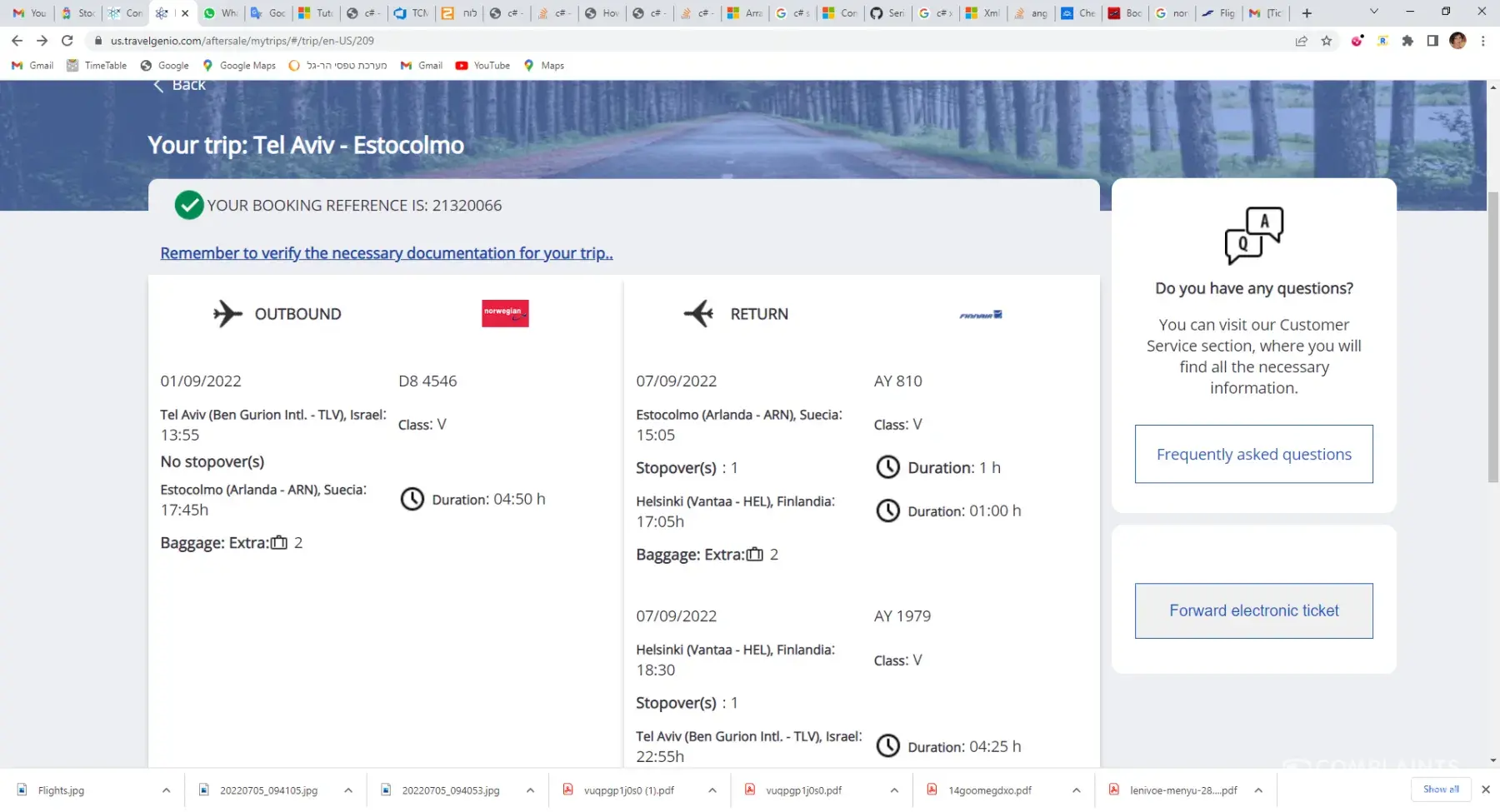 i booked 2 flight tickets from Tel Aviv to Stockholm