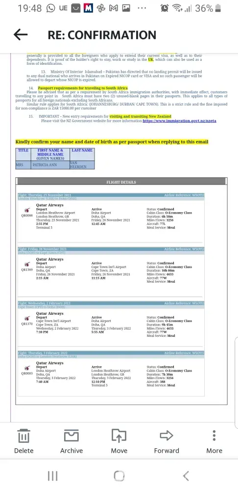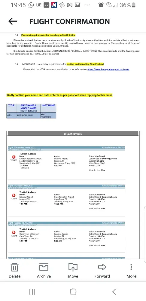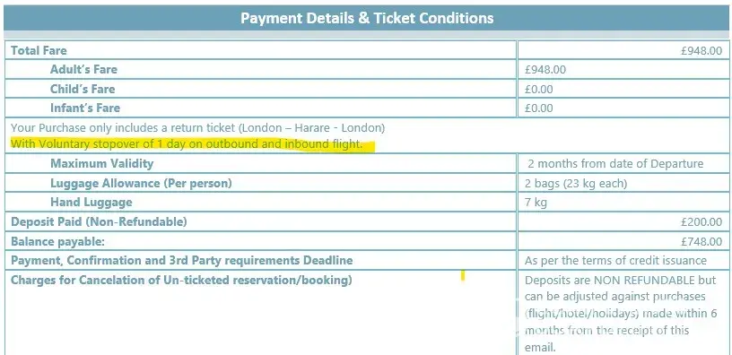 I bought an air ticket to fly from Heathrow to Cape Town, South Africa. flying on the 4th of May and returning on the 14th of July with Turkish airline.