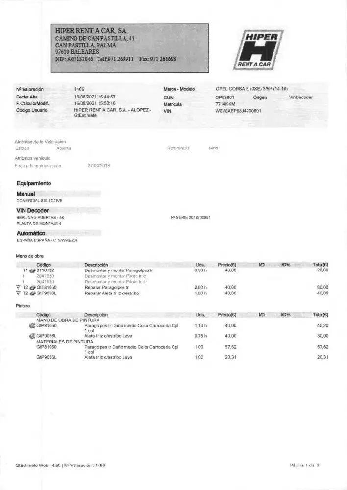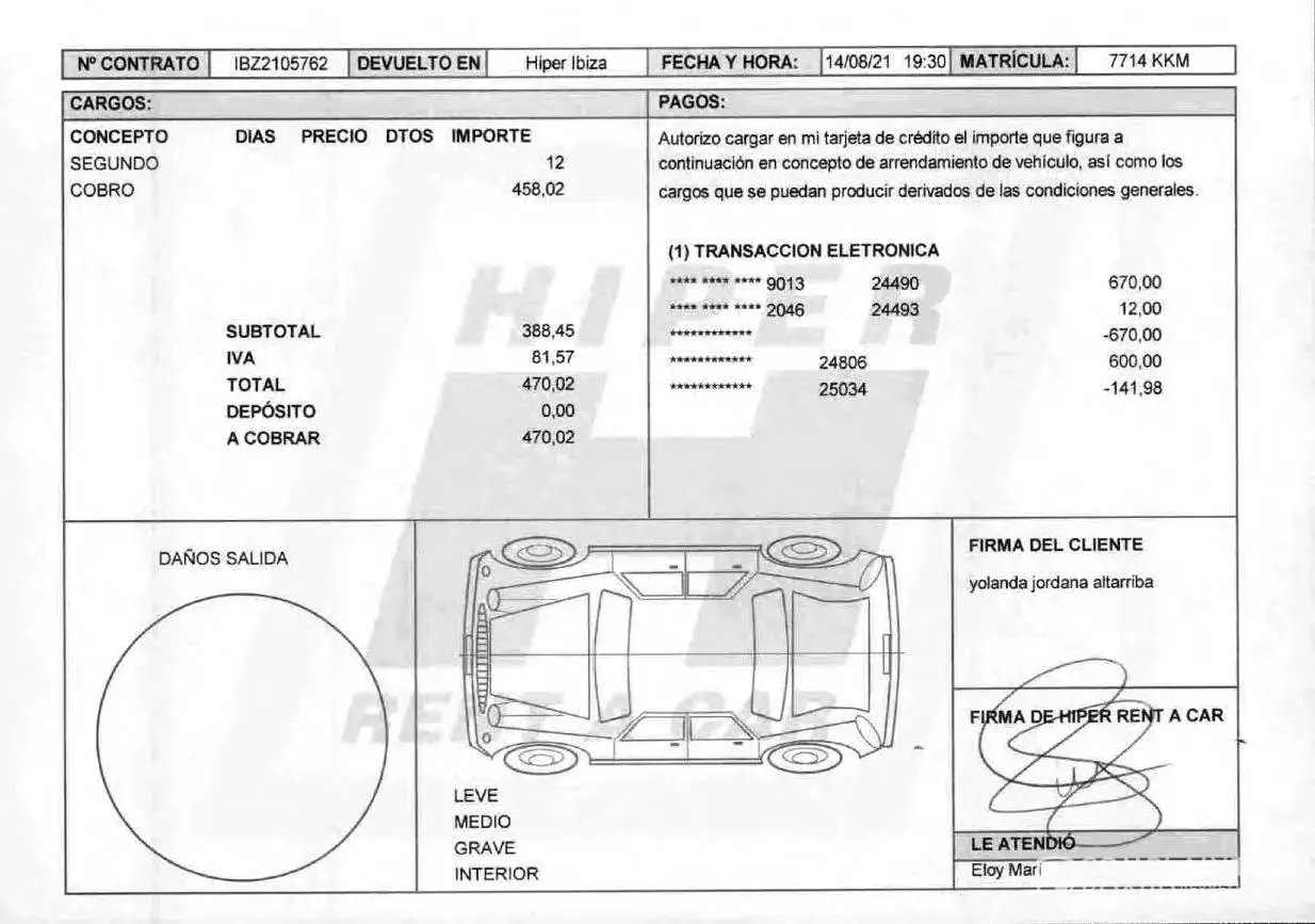 -Del coche de alquiler se dañó la parte trasera a la izquierda y del otro coche la parte izquierda delantera.