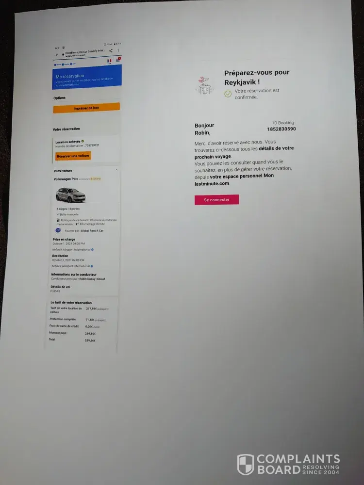 I bought with Lastminute.com on September 27th a package including a car location in Island in October 2021, find here the number : [protected]