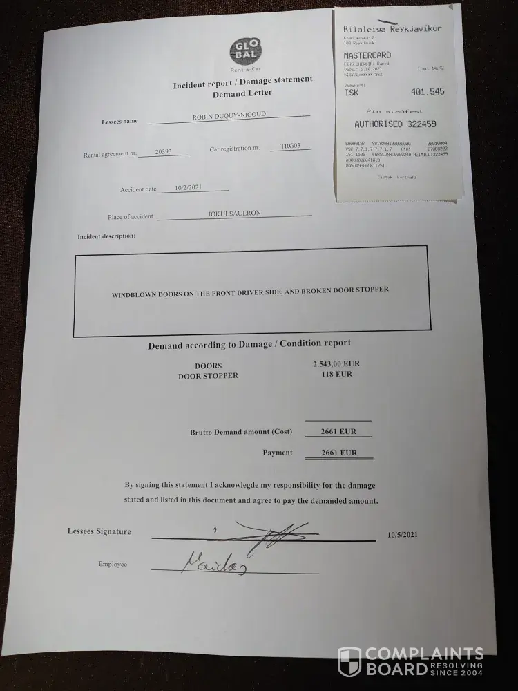Could you please help me to follow the right process to operate and get reimbursed for the 2661 euros paid for the damage (rental car agreement : 20393), I have already tried to send several emails & call different numbers ... with no result.