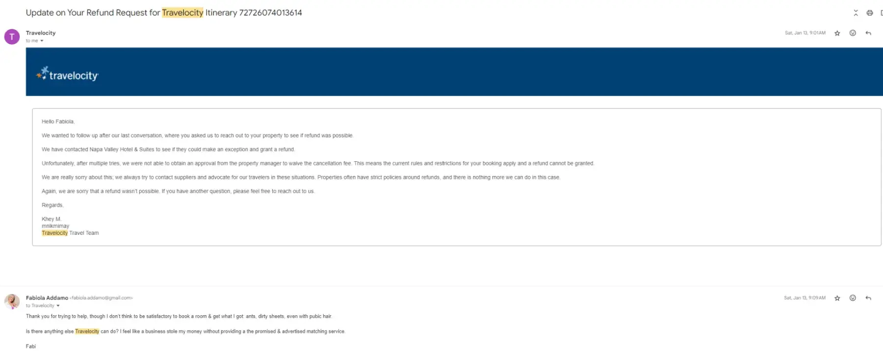 p.s. I have the confirmation email from Travelocity and screenshots of the conversation with Jenny for evidence.