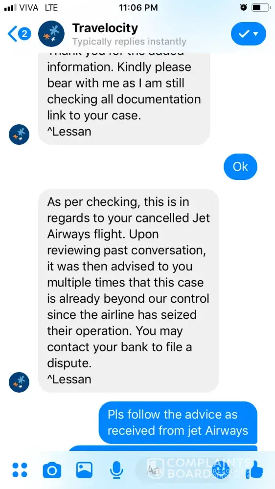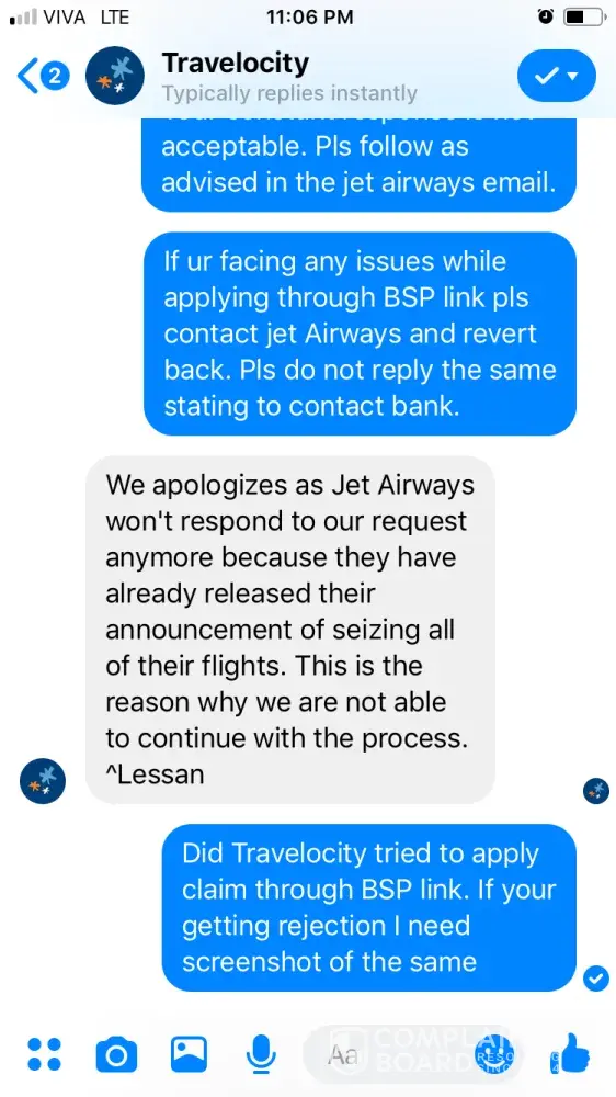 Irresponsible response, even after repeated request to Travelocity, failed to follow the instructions provided by airways to claim for refund or least bothered to contact airways for the assistance even after passed 15days from the suspension of jet operations.