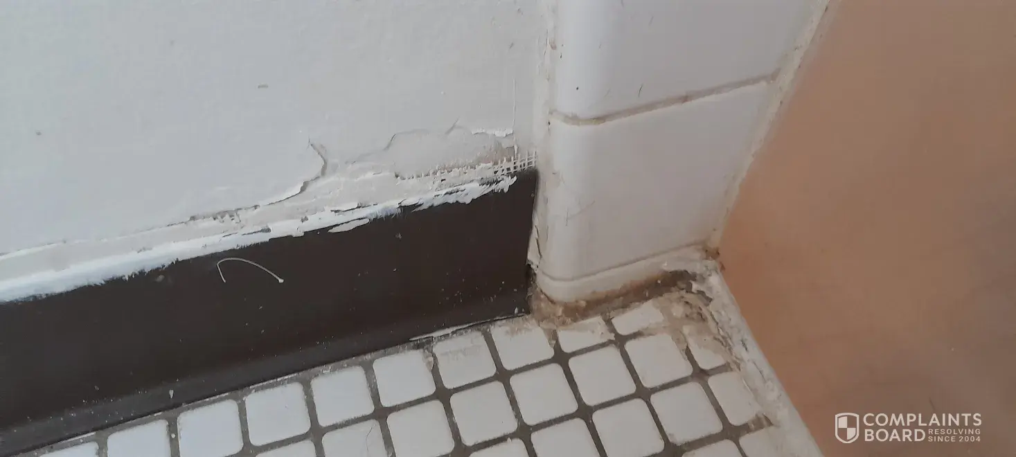 2: Flooring up edge of shower hanging off