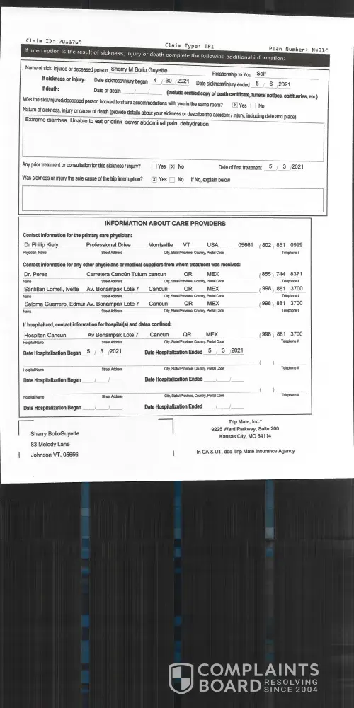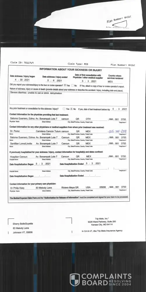I purchased travel insurance with tripmate for my recent trip. I became ill while in Mexico and incurred medical expenses to the sum of $3000 plus. I filed a claim on May 7, 2021. When checking the claim status online, there is o information. Claim # is 7011769. I have called Trip Mate multiple times over the course of two weeks and cannot get any one to speak to. I have emailed with no response. How am I supposed to resolve this when nobody will respond to my calls or emails?
