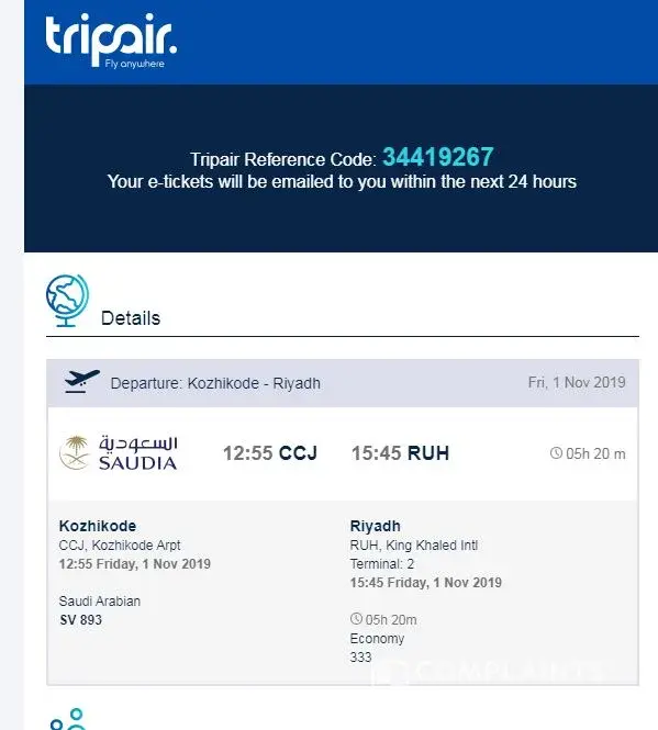 I have make a reservation of a flight with tripair altair travel with emirates to oman.