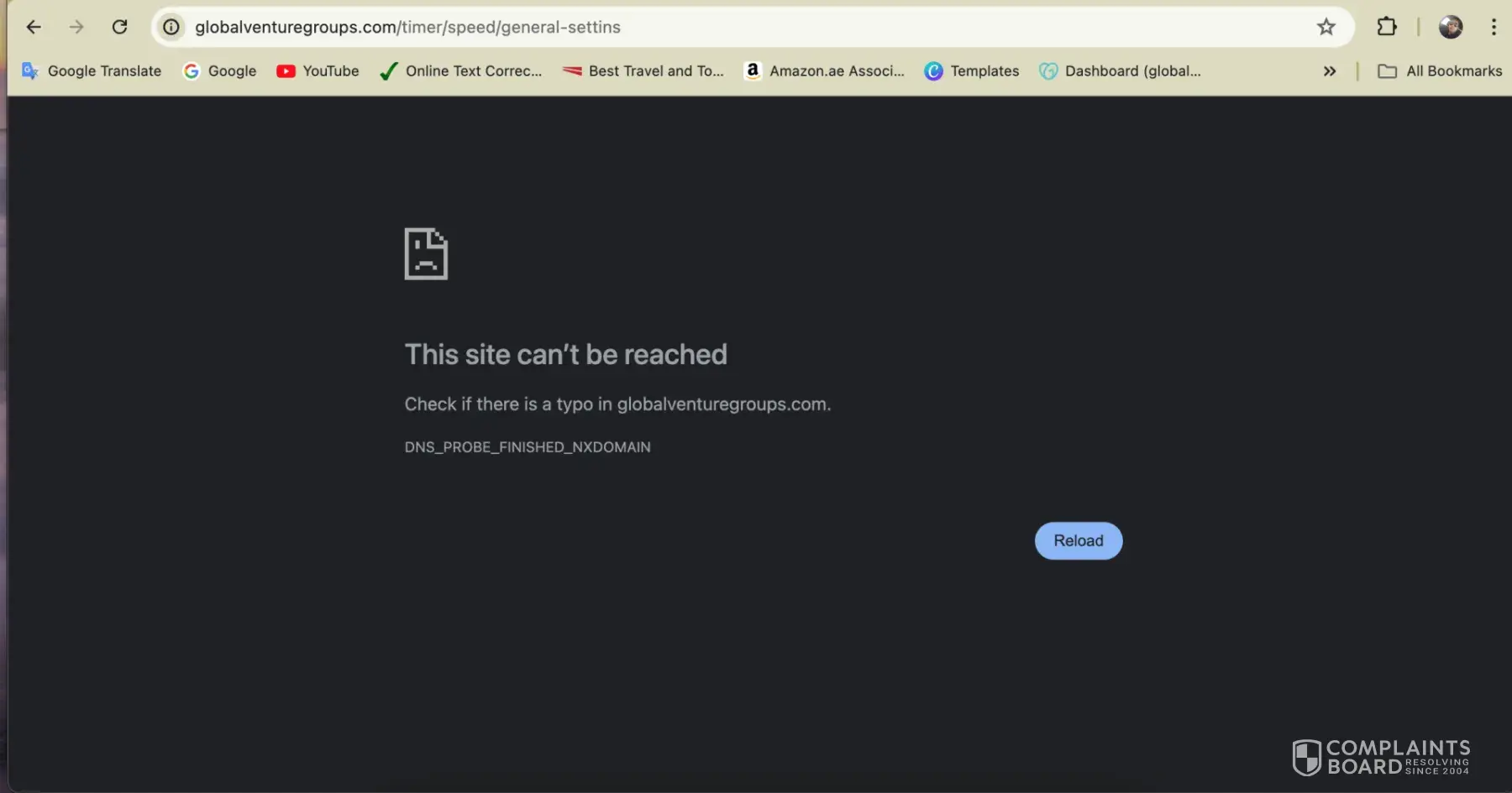 I am quite frustrated with the repeated issues I've encountered with Trip Mega Mart's services. This is not the first time I have faced difficulties accessing both the Global Venture Groups website and the admin web service. Once again, I received an error message indicating that the site cannot be reached (see attached screenshot).