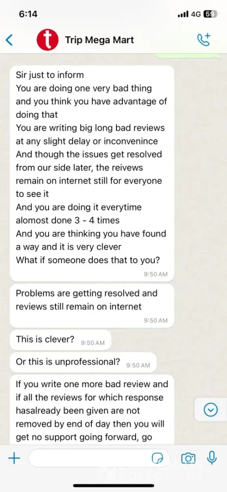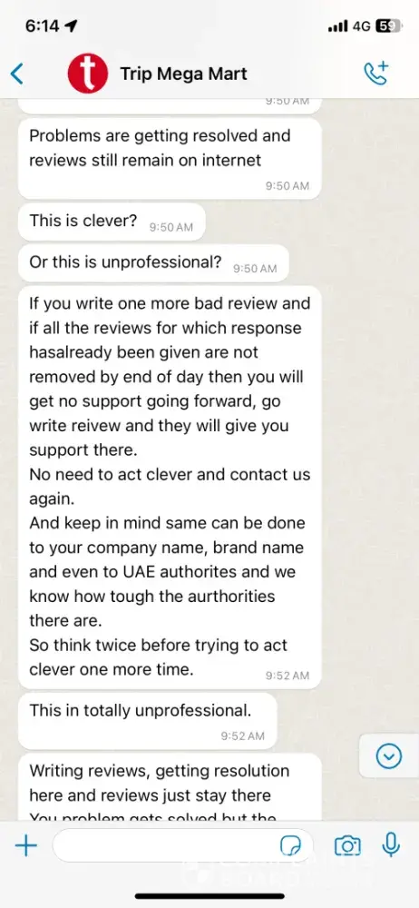 In light of this experience, I cannot recommend Trip Mega Mart to others. Their lack of accountability and customer service is a red flag for anyone considering their services.