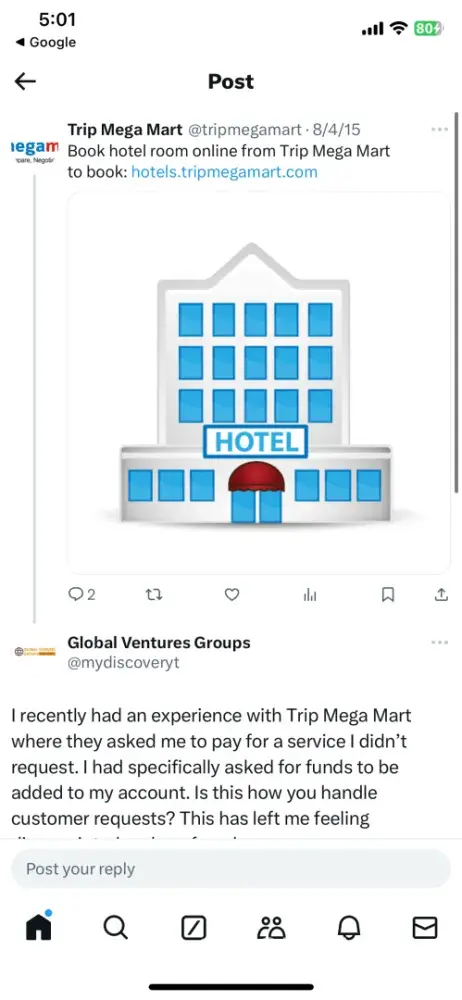 I reported them to the authorities, but nothing has been done so far. I hope this review can warn others not to fall into their trap. Don't be a victim of their scam. Stay away from TripMegaMart. It's not worth the risk. There are many other legitimate travel agencies out there. Don't let these scammers ruin your vacation plans. Be safe.