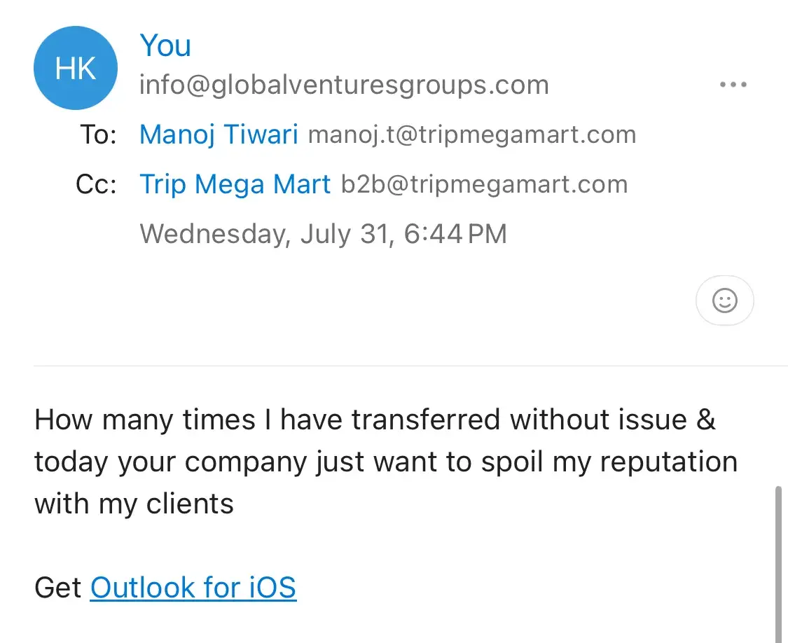 I had a deeply disappointing experience with Trip Mega Mart. I paid in advance for a booking, but they never acknowledged my payment. This negligence not only resulted in losing my money but also led to significant issues with my clients, damaging my reputation and business.