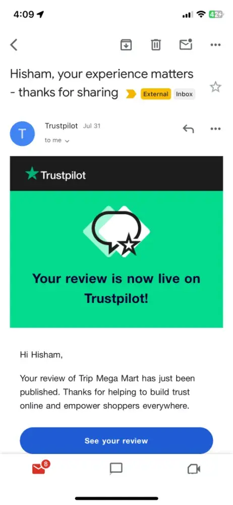 After seeing TripMegaMart advertised online, I decided to give it a shot. I have to admit, I was a bit skeptical at first given some of the reviews online. However, I decided to give them a chance and see for myself.