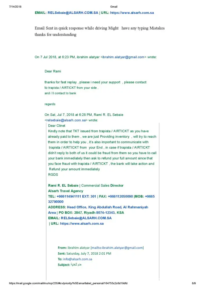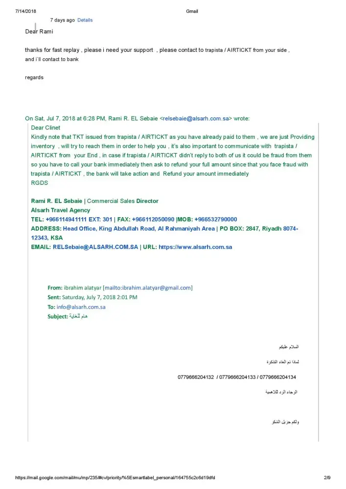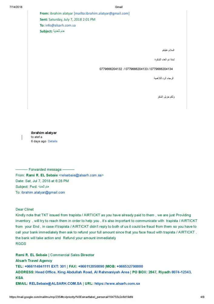 and i contact with egypt air he give me company name Alsarh Travel Agency