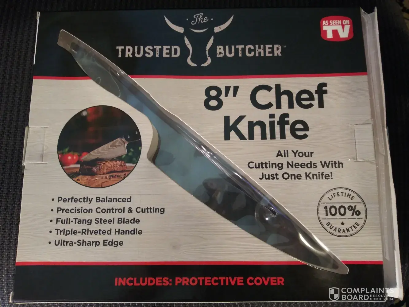 I purchased a 8" Chef Knife with 100% Lifetime Guarantee. It got rusted only after 2 months. I contacted them several times by emails and I asked them for the replacement and I got the run around. They did not honor their 100% Lifetime guarantee and they did not replace the rusted knife. I am extremely disappointed and dissatisfied with their product and how they handle their customer complain.