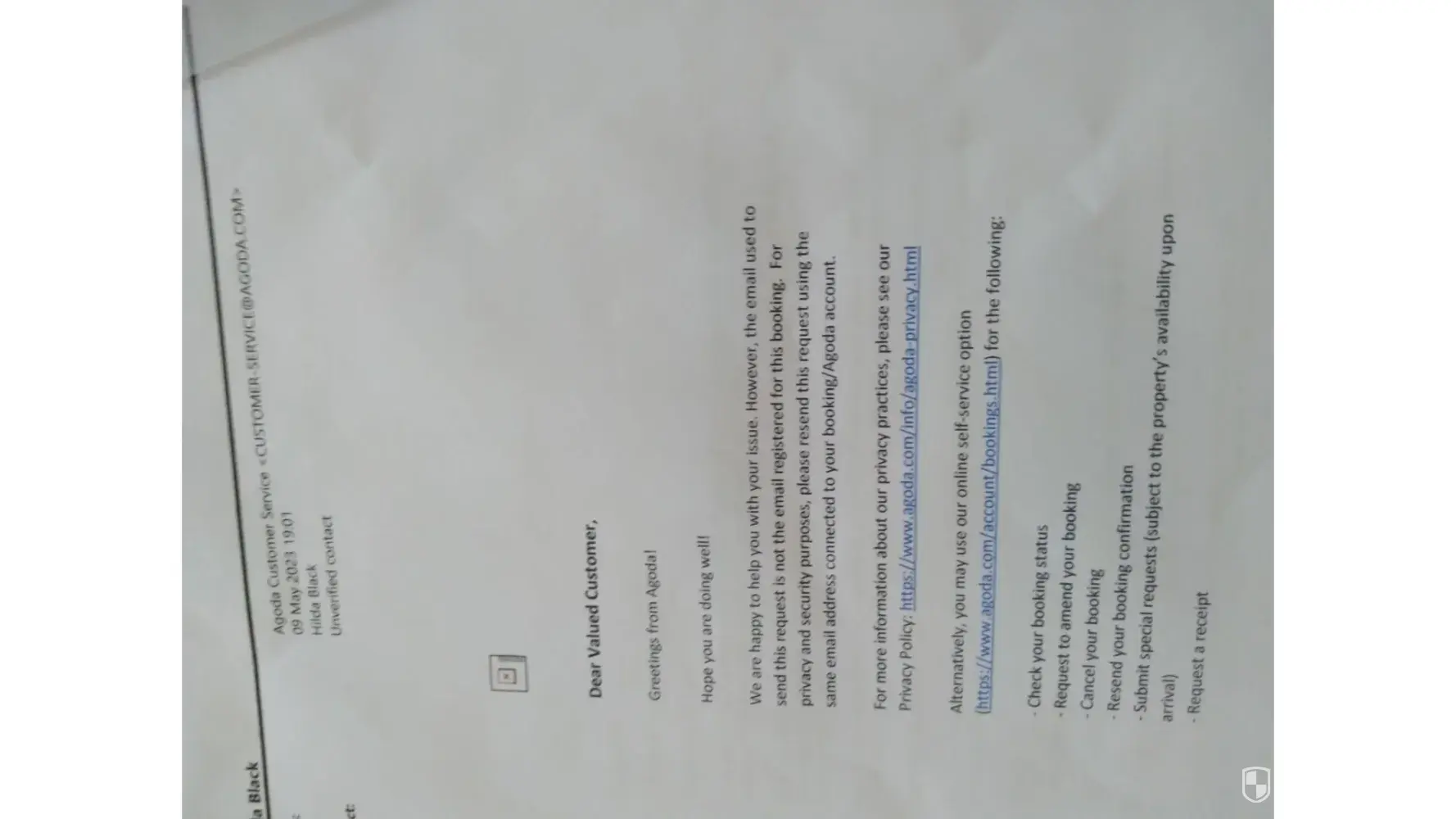 last choice is since you took my money, at least respond to me.