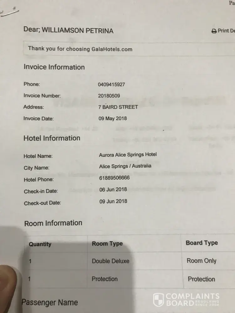 The hotel confirmation number is [protected]. I have a photograph of the Trivago advertisement on my phone but am not overly computer literate so cannot upload it for you to see.