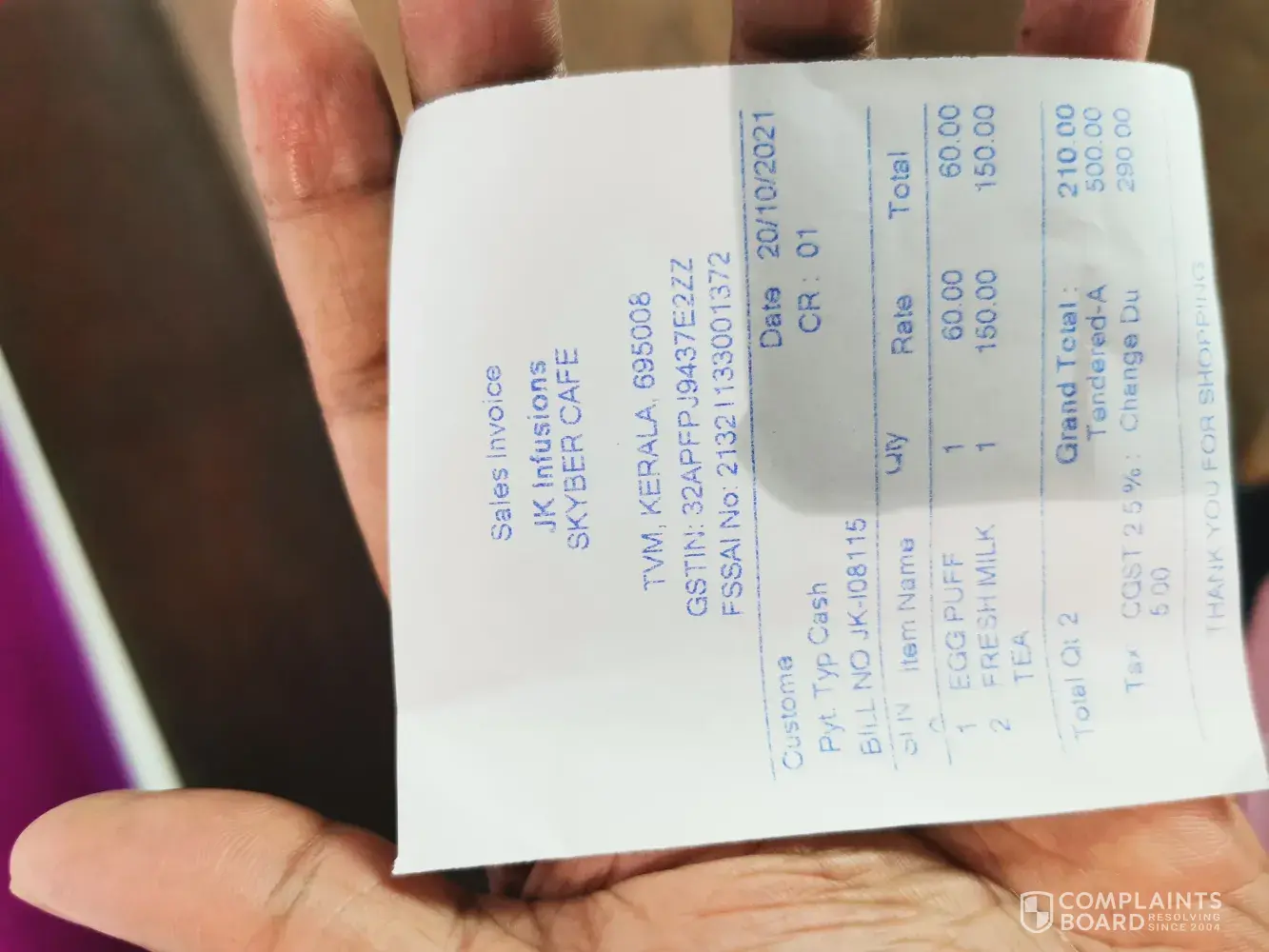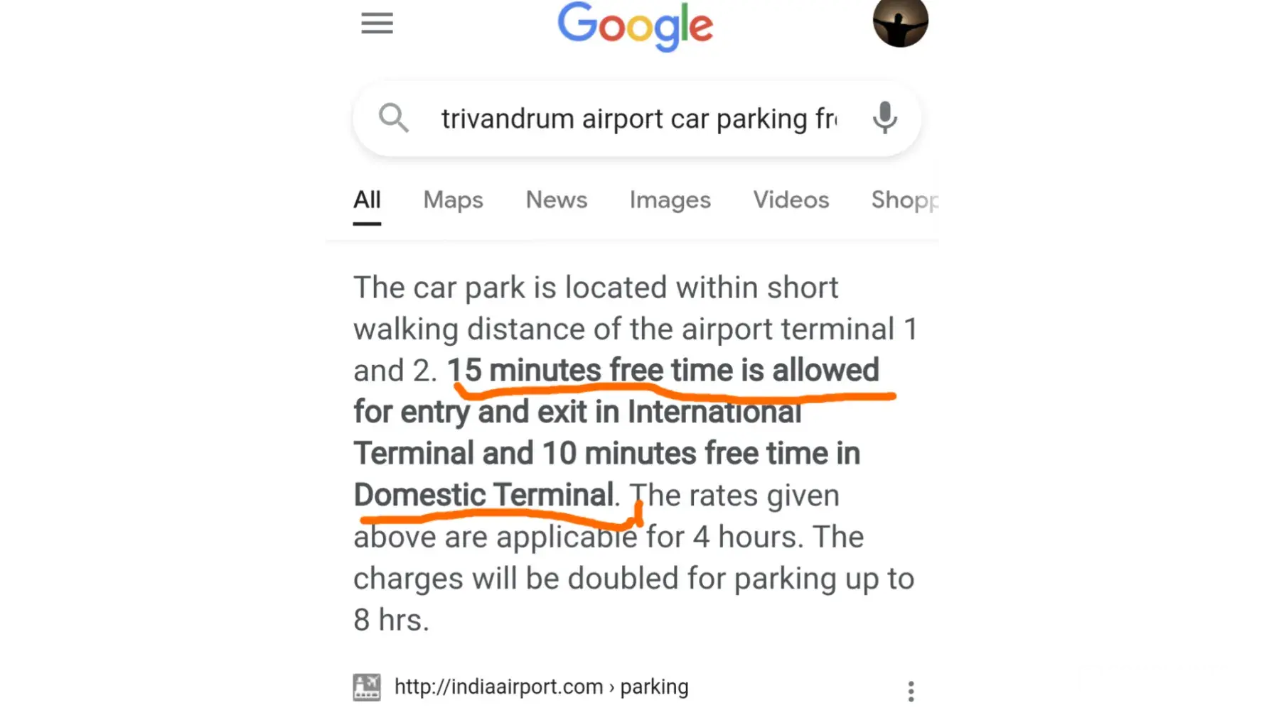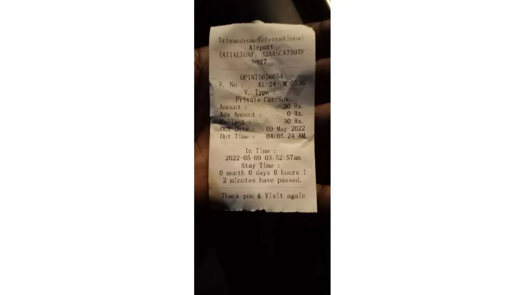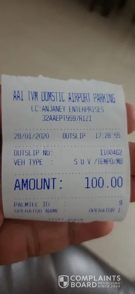 Trivandrum Airport charged 100 instead of 85
