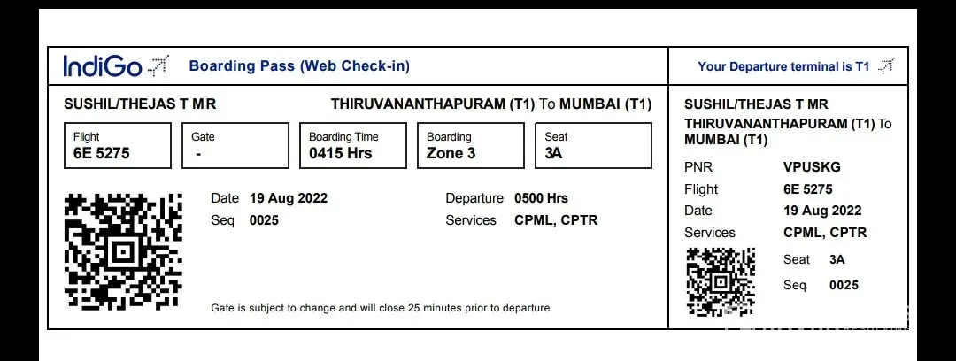 Name of the Passenger- Thejas T Sushil