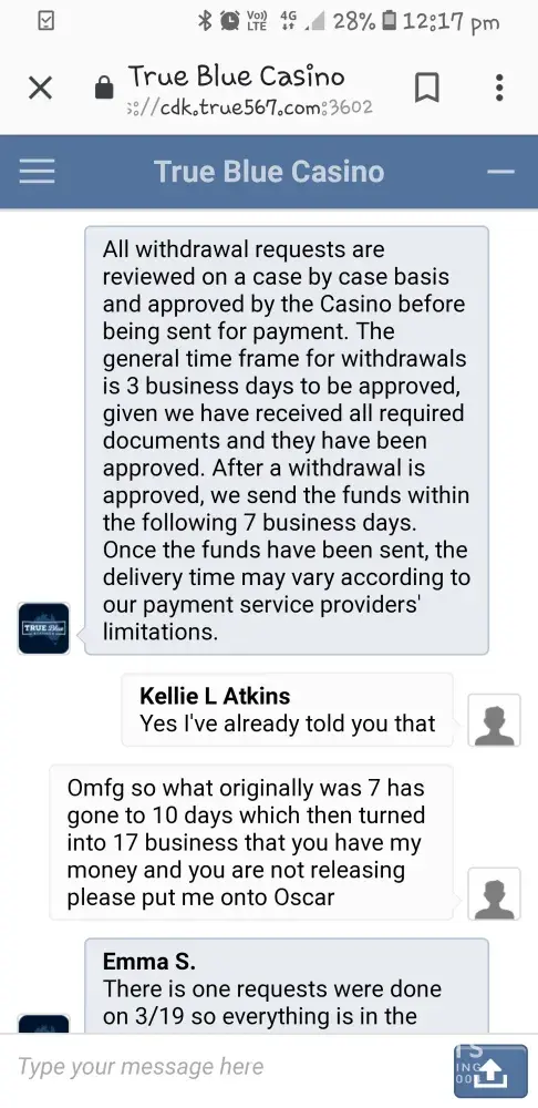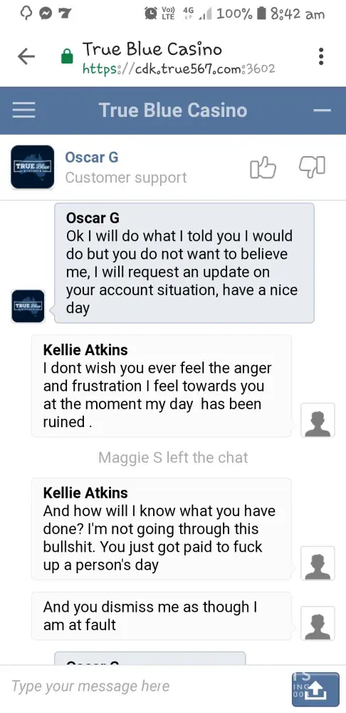 On the 20th I went to the customer service team to confirm all was well and to get that they did request hooyu to validate me as well as to query why one of my requests date and payment type had been changed . I have screenshot the whole conversation of which I was called a liar, spoken to extremely rudely disconnected from conversation passed onto the casino manager insulted by him and lied to by him.