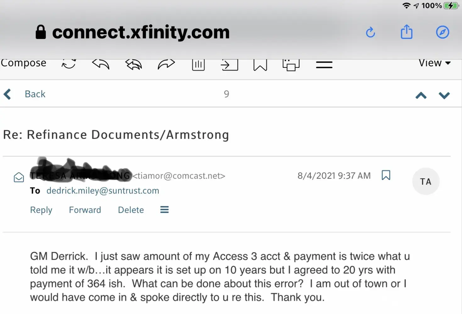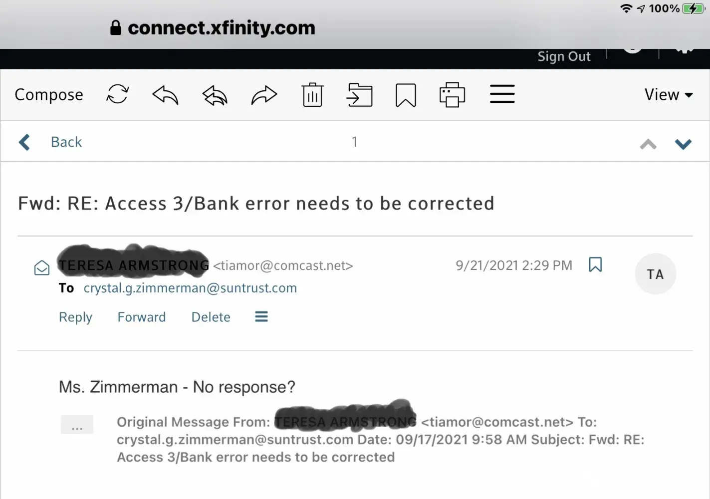 I thereafter (August 3rd) went to the Truist bank in person and talked with a Ms. Crocker and she got AT&T on the phone and we were told the very same thing, they had done what they were supposed to do.
