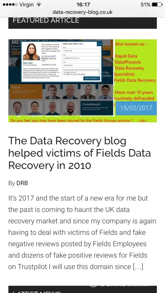 My name and my companies were attacked by Fields Associates Ltd posting fake forum comments and reviews in my name and my companies name, their operation manager was then paid to lie in an afgidavit to secure my name being attached to a High Court Injunction- During the delivery of the HCI by Fields caredfully selected process serving partners I was served the document but in the transaction had an "accident" that in the words of the Police Interviewed only witness to my injuries I should not have survived.