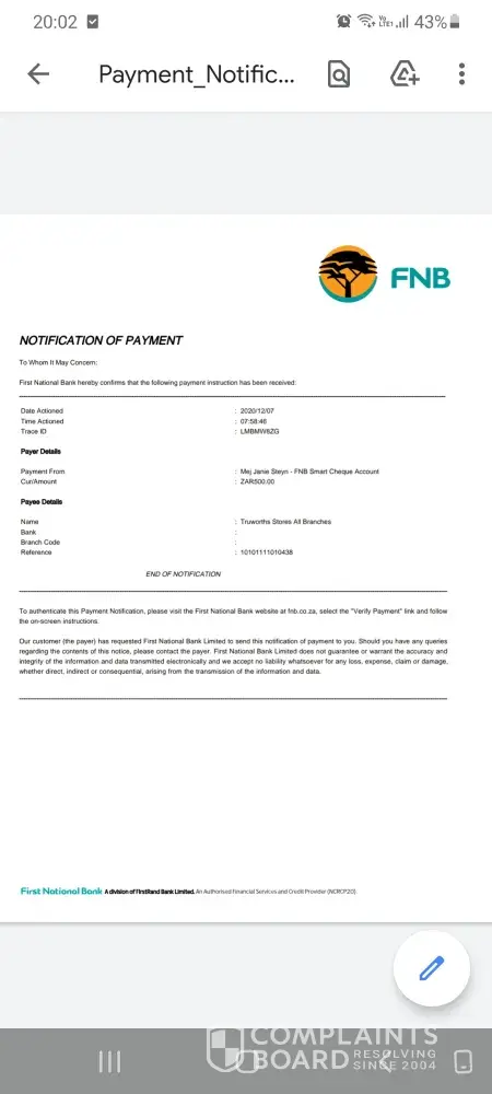 We also know that truworths clothing is not cheap, so I don't understand how a massive fashion retail outlet like truworths offers such pathetic delivery service!