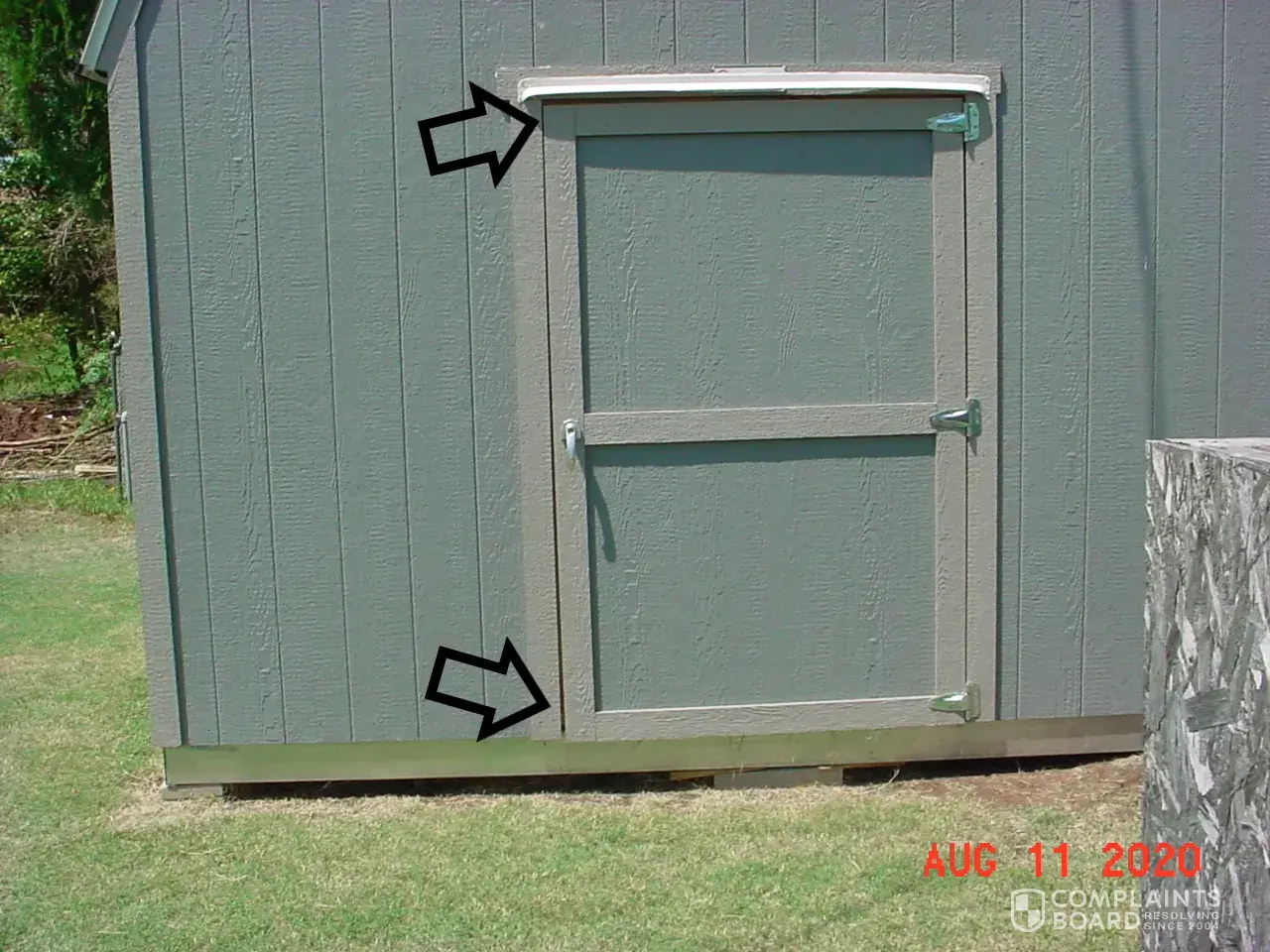 THE DOOR IS WARPED AT THE BOTTOM creating an opening for critters and snakes or chipmunks and mice!, 2 to build it on August 13, 2021, , 1 guy came o do caulking and finish painting certain areas, , another 2 guys came out after complaint of door, , after arguing over a new door that fit mind you a new product!, , one last guy named Paul came out to look at door and place new DOOR, on and it did not fit, , HE called me at work said MAYBE i was expecting to much, , I can not prove that but I KNOW HE SAID IT!, He said he would figure a way to fix it, , I appreciate his effort, but it looks like a BAND AID, a foam around the door opening to fix issue, , , I do NOT know many NEW SHEDS with doors where it does not fit properly and FIX with FOAM around opening, YES the hole is gone, , BUT THE DOOR IS STILL WARPED, , , , , , I got call from CARL, District manager, who said he would give me a smaller residential door with a seal around, BUT HIGHER price, , giving me $500.00 on current warped door and another $300.00, i would have to pay to get residential door with seal. because CARL said he would cost more to but on a new door residential, at $800.00, , , I felt being SCAMMED, , I chose the original door with the band aid foam around shed door as sealed. CARL would not give me the same $500.00 discount as before for the WARPED door, so i can move on from this VERY STRESSFUL incedent from August 13, -- October10th approximately.. Carl was not helpful, , but making a buck and NOT HELPING CUSTOMER for a failed product, , I was disappointed!