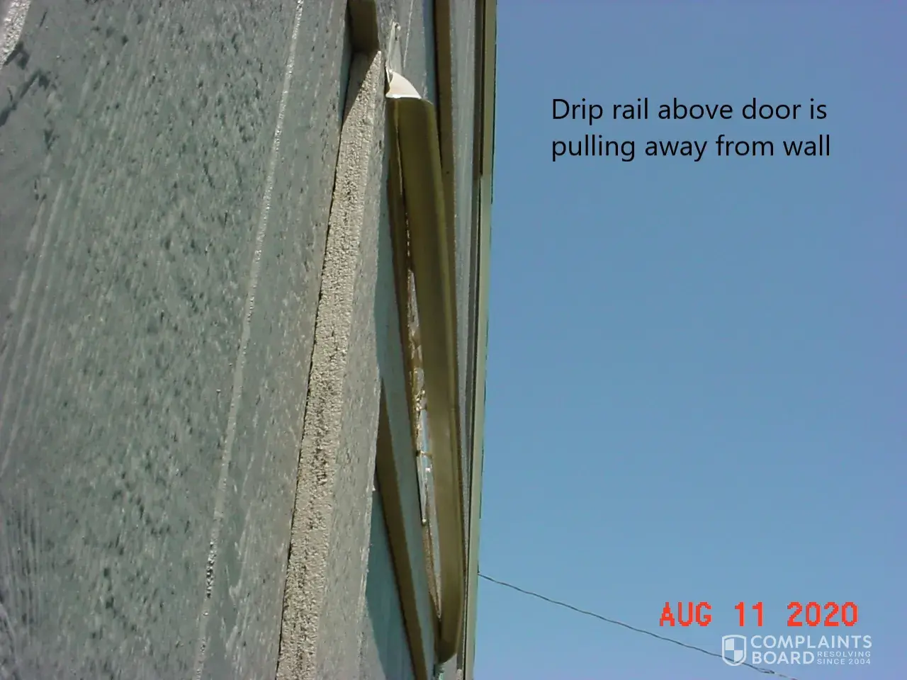 Concrete supports, wood shims, trim boards, door drip edge, door, not level