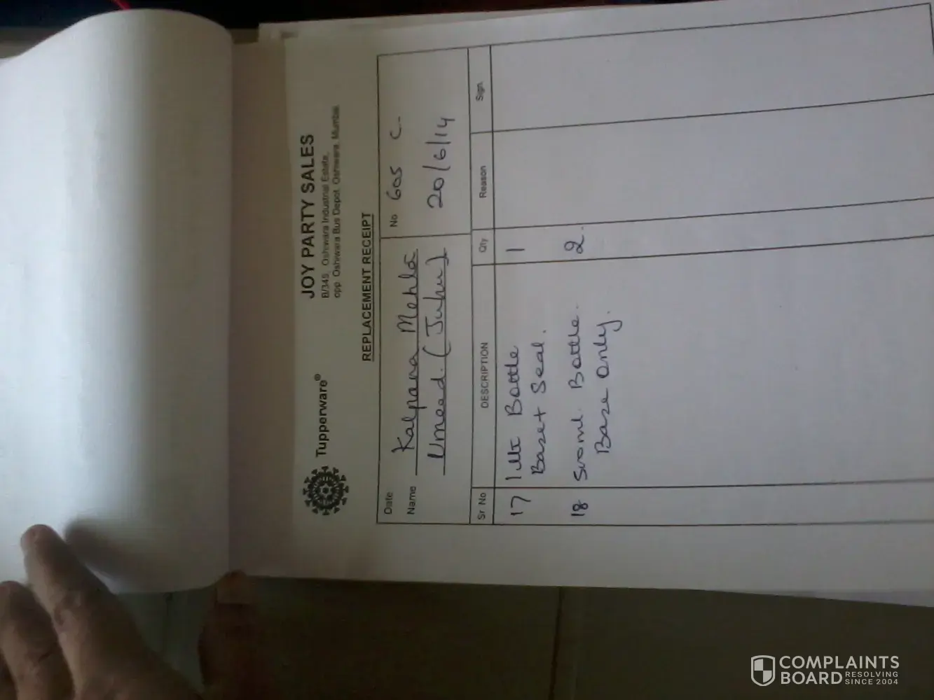 I request Tupperware either to replace my products at the earliest or return the amount I spent in buying those products.