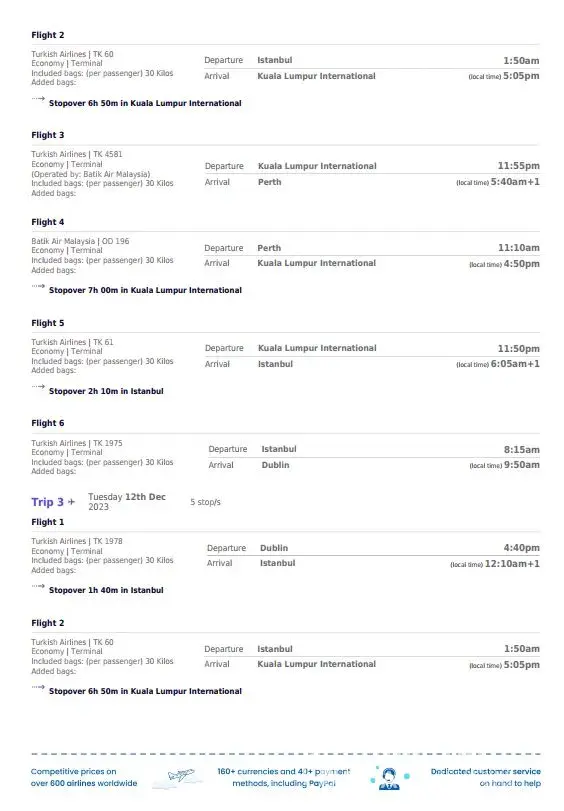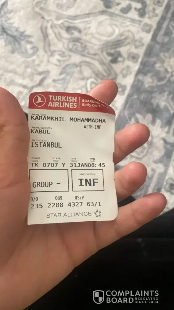 I boarded a flight on 7th December from Birmingham to Kigali via Istanbul flight no TL1968 booking ref no: WDUZ4E.